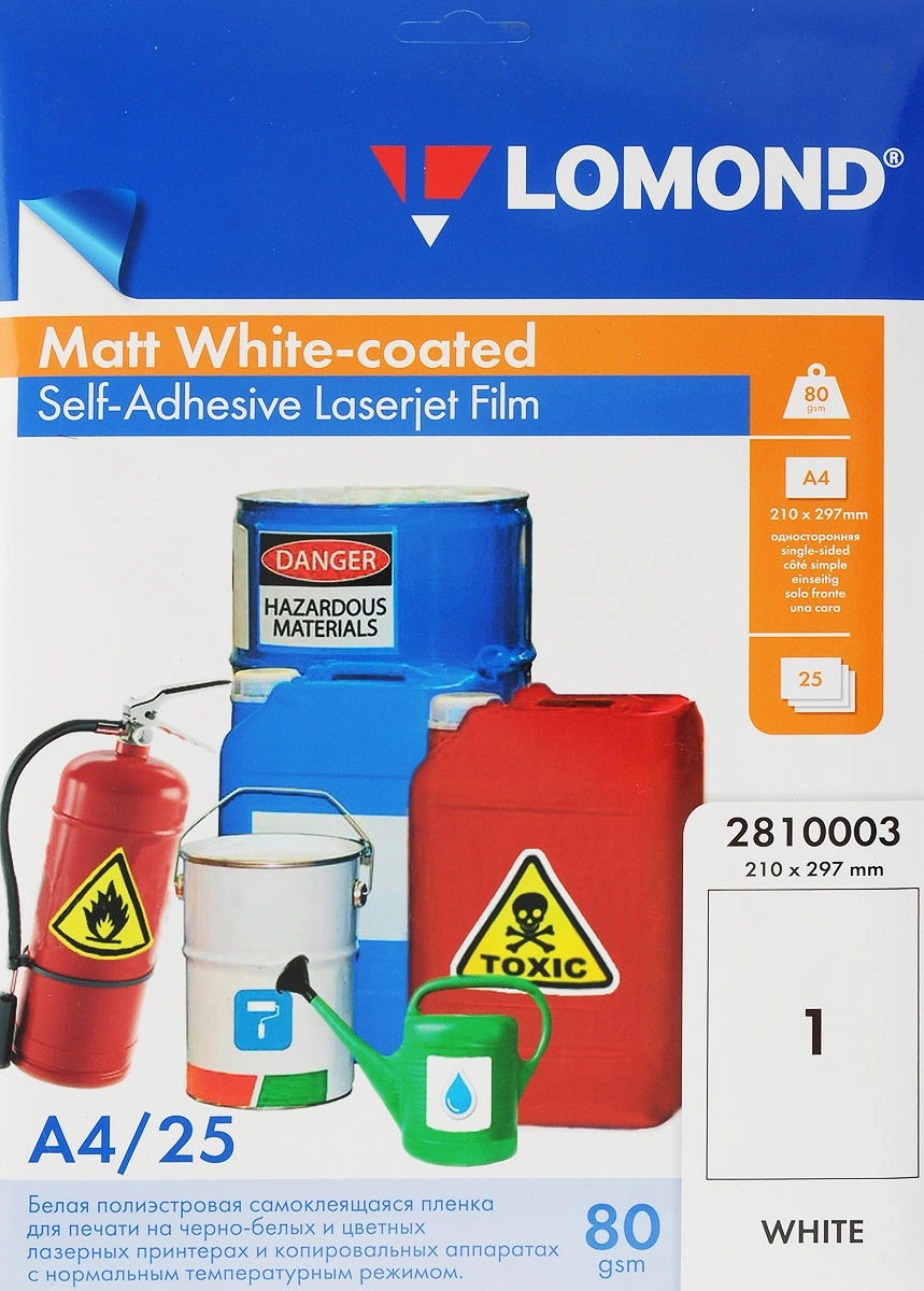 Плёнка для печати Lomond [A4] для цветных лазерных принтеров, белая, самоклеящаяся, 25л