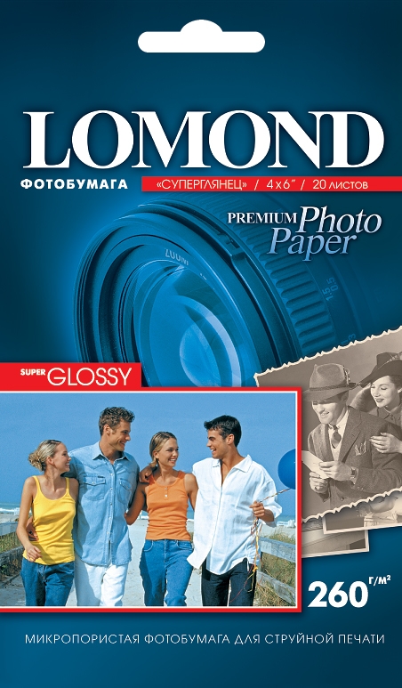 Микропористое покрытие обеспечивает столь же высокое качество печати, как и традиционная фотография. Себестоимость отпечатков на бумаге Lomond Premium Photo c использованием картриджей Lomond – ниже, чем стоимость отпечатков, получаемых по традиционной технологии с использованием химических реактивов. Благодаря полиэстеровому покрытию бумажной основы бумага Lomond Premium Photo совершенно не подвержена короблению после прохода через принтер даже при самой интенсивной «заливке» чернилами. Модификация Super Glossy по фактуре поверхности наиболее близка к традиционной «химической» фотобумаге. Отпечатки отличаются высоким глянцем.