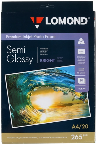 Фотобумага Lomond 1106301 премиального качества двухсторонняя полуглянцевая. Ее плотность составляет 265 г/м². На поверхность нанесено покрытие из полиэстера, которое не дает бумаге коробиться при впитывании чернил. Микропористая основа обеспечивает их отличное поглощение, благодаря чему обеспечивается фотографическое качество печати. В пачке Lomond 1106301 20 листов формата А4. Их можно использовать для печати страниц рекламных буклетов, открыток, визитных карточек и другого раздаточного материала.