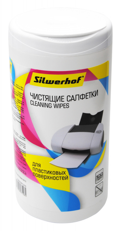 Салфетки Silwerhof Влажные салфетки для компьютеров и оргтехники (100шт) туба