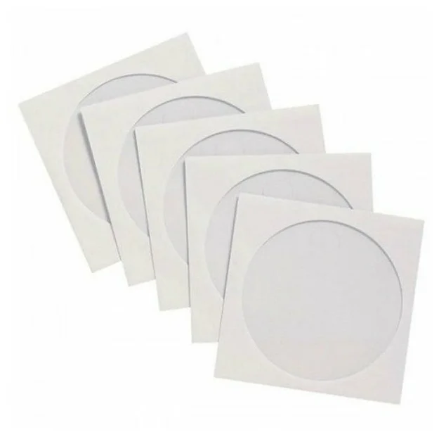 Конверт для CD/DVD бумажный с окном, с клейким клапаном, белый, упаковка 100 шт