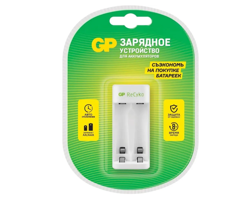 Зарядное устройство AA/AAA GP E211CS-2CR1 AA/AAA NiMH блистер (на 2 слота) Форм-фактор: AA/AAA. Тип аккумулятора: NiMH. Тип заряжаемых аккумуляторов: NiMH. Заряжает: AA, AAA.