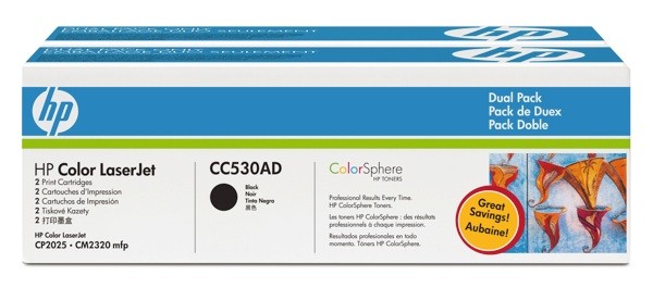 Ккомплект картриджей HP CC530AD с чернилами черного цвета предназначен для лазерных устройств HP. Картриджи обеспечивают печать высокого качества, произведены с использованием последних технологий специально для профессиональной печати. Рабочий ресурс картриджа составляет 3500 страниц. Данная модель картриджа подходит для HP Color LaserJet CM2320; CP2025.
