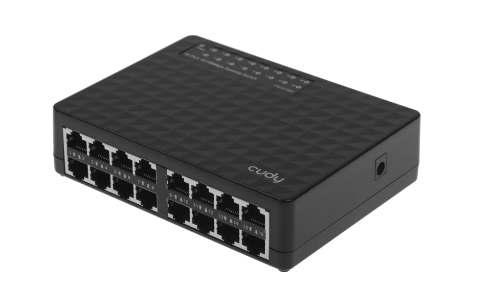 Коммутатор 16 port Cudy FS1016D 100 Мбит/с — неуправляемый 16-портовый коммутатор для проводного Ethernet. Предназначен для подключения устройств (компьютеров, ноутбуков, принтеров и т. д.) в пределах одной или нескольких зон локальной сети.