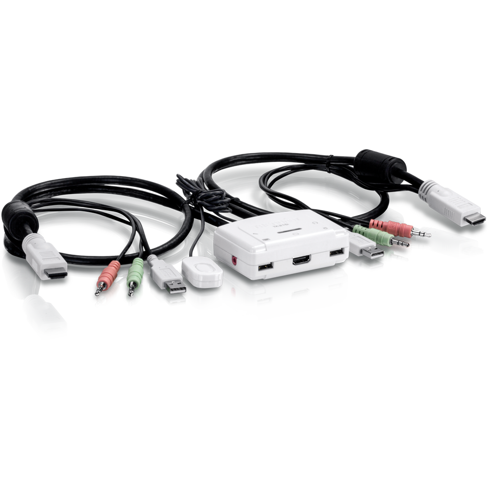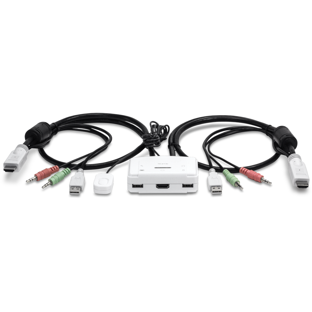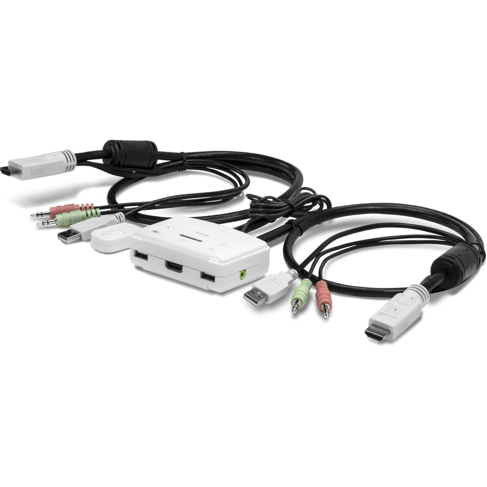 KVM-переключатель TRENDNet TK-215i является двухпортовой моделью для управления двумя компьютерами с одной KVM-консоли, в которой предусмотрены мышь, клавиатура и монитор. Переключатель не требует установки дополнительного ПО и поддерживает управление машинами, работающими на платформах Mac OS или Windows. Для переключения между управляемыми ПК этот аксессуар предлагает комбинацию клавиш на клавиатуре или кнопки на передней панели переключателя. Питание переключателя реализовано через USB-интерфейс. KVM-переключатель TRENDNet TK-215i с белым корпусом обеспечивает передачу видеосигнала через интерфейс HDMI, поддерживая видеорежим до 1920х1080 пикселей. Он получил консольные порты HDMI, USB тип А, USB тип А, стерео 2.0 и порты HDMI x2, USB тип А x2, USB тип А x2, стерео 2.0 x2 для взаимодействия к компьютерами. Производитель рекомендует использовать переключатель при температуре от 0°C до 40°C, влажности воздуха до 90%.