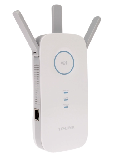 Усилитель беспроводного сигнала TP-LINK RE450 отличается компактностью. Габариты корпуса, оформленного в белом цвете, составляют всего 163х67х76 мм. Устройство крепится внутри помещения на стену. В конструкции предусмотрены 3 внешние антенны. Точка доступа работает от сети 220 В, также поддерживается PoE. Усилитель беспроводного сигнала TP-LINK RE450 поддерживает несколько стандартов соединения по Wi-Fi. Частота работы передатчика может составлять 2.4 ГГц или 5 ГГц, предусмотрена возможность работы устройства сразу в двух диапазонах. Максимальная скорость беспроводного соединения, доступная для этой модели, составит 1750 Мбит/с. Устройство может работать в режиме точки доступа, повторителя или моста. Прилагается руководство по быстрой настройке.