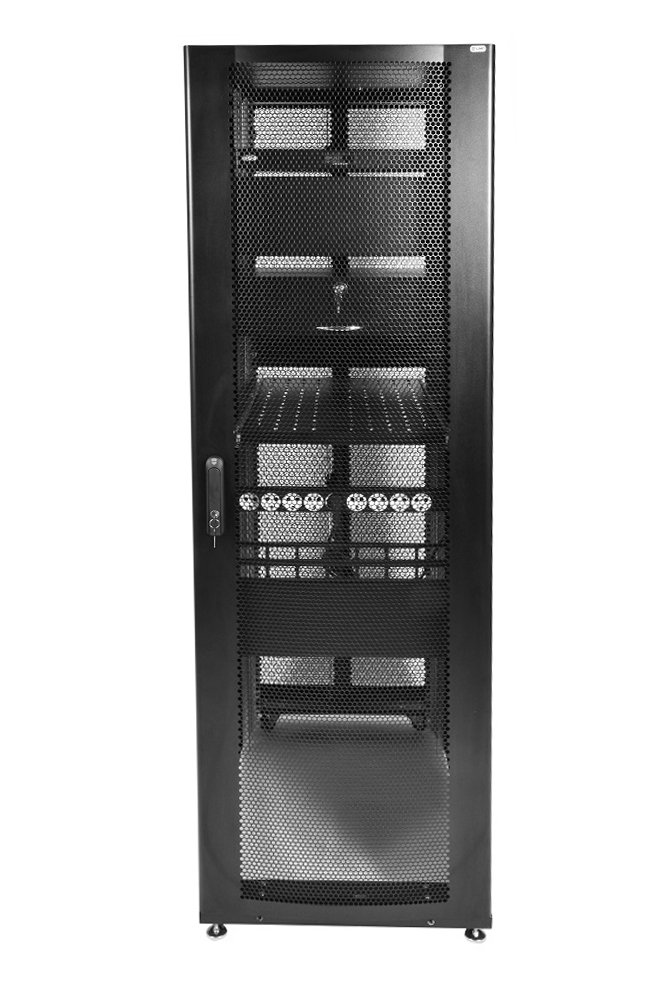 Шкаф серверный ЦМО ШТК-СП-48.6.12-44АА-9005 48U 600x1190мм пер.дв.перфор. 2 бок.пан. 1350кг черный