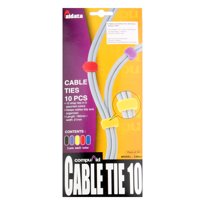 Цветные нейлоновые стяжки на липучке Aidata СМ03 применяются как один из наиболее быстрых, удобных способов бандажирования, крепления, маркировки и хранения кабеля. Благодаря гибкой и мягкой поверхности исключается повреждение кабеля. Стяжки могут быть использованы многократно. В комплект входит 10 шт. (5 пар разных цветов).