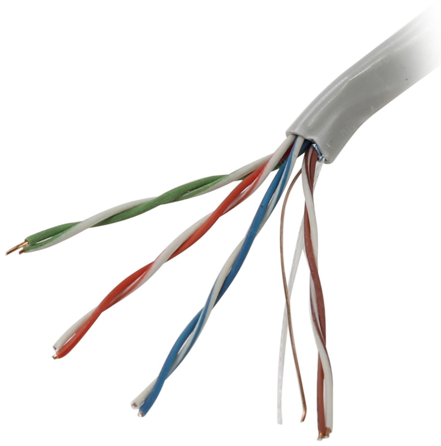 Кабель TWT-6UTP-GY, 4 пары, Кат.6, PVC, серый, 305 метров Кабель произведено из 4-х пар одножильных медных проводников. Поперечник проводника 24AWG. Любой проводник заключен в изоляцию HDPE (полиэтилен высочайшей плотности). 2 проводника, скрученных со нарочно выбранным шагом, оформляют 1 витую пару. 4 витых пары обернуты полиэтиленовой пленкой и совместно с медным заземляющим проводником заключены в артельный экран из фольги и оболочку из PE (полиэтилен).