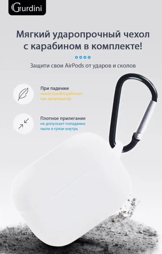 Чехол для наушников Apple Airpods Pro 2 - Gurdini soft touch c карабином, белый
