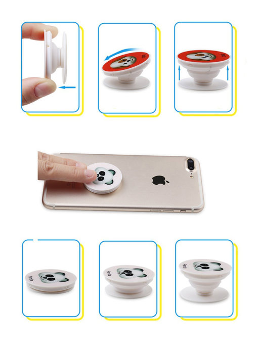Держатель для телефона Totu сделан из качественного пластика и пластины c оригинальным принтом на лицевой части. Крепится на заднюю панель смартфона или небольшого планшета. В открытом состоянии его можно использовать, как подставку ,а также обхватив пальцами, удобно держать смартфоны с большой диагональю или небольшие планшеты, чтобы смотреть видео, делать селфи и т.д. В сложенном состоянии его высота всего 5 мм. В раскрытом состоянии может иметь небольшой наклон.