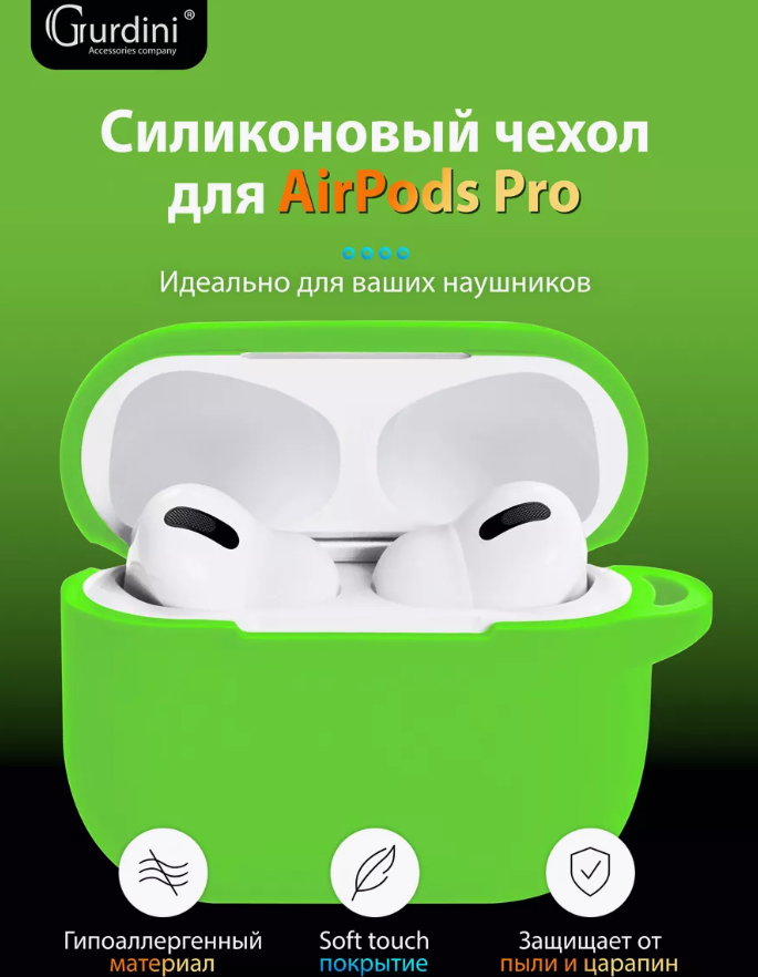 Чехол из качественного и тактильно приятного силикона для наушников Apple Airpods Pro для iPhone. Данный чехол надежно защищает корпус зарядного кейса от царапин и внешних воздействий, придавая ему индивидуальный внешний вид. Подходят для беспроводных аирподс и их аналогов. В комплекте с наушниками для айфона идет карабин с помощью которого можно прицепить наушники к сумке, брелку, ремню.