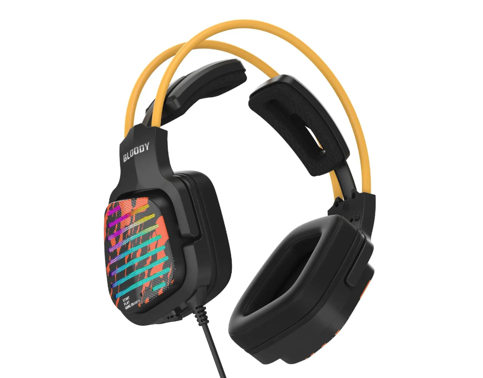 Наушники проводные A4Tech Bloody G565 ENERGY (микрофон, 20 - 20 000 Гц, 7.1 Surround (виртуальный) USB) black.Виртуальный объёмный звук 7.1. Позволяет полностью погрузиться в игровой процесс или прослушивание музыки, ощущая себя в центре событий. Мощные 50-мм динамики. Формируют детализированный и насыщенный звук. Микрофон с функцией шумоподавления, расположенный на корпусе наушников. Отвечает за передачу чистого голоса без искажений. Эргономичное регулируемое оголовье. Обеспечивает комфорт прослушивания в течение целого дня. Амбушюры из экокожи с эффектом памяти. Обеспечивают ушам максимальное удобство. Чаши украшены элементами многоцветной подсветки, которая настраивается в зависимости от предпочтений пользователя. Подключается посредством USB-кабеля. Длина кабеля — 2 м.