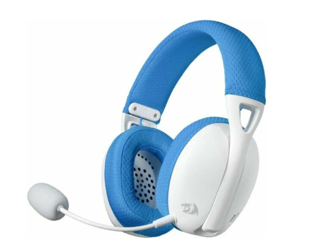 Наушники беспроводные Redragon Ire Pro белый/синий - лёгкие беспроводные наушники с двумя вариантами беспроводного подключения (BT и 2.4G) и съёмным микрофоном.виртуальный объёмный звук 7.1; время работы от аккумулятора — 25 часов; ёмкость аккумулятора — 400 мА·ч; длина кабеля — 1,8 м;