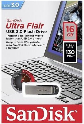 Память USB Flash Sandisk Ultra Flair соответствует стандарту USB 3.0, что обеспечивает высокую скорость передачи данных. Максимальная скорость записи информации для этой модели составит 45 Мбайт/с, а скорость чтения равна 130 Мбайт/с. Устройство способно сохранить любые типы файлов объемом до 16 ГБ. Дополнительным преимуществом представленной флешки является защита записываемой информации паролем, что обеспечит конфиденциальность Ваших данных. Корпус USB Flash Sandisk Ultra Flair сделан из прочных материалов (металла и пластика), что обеспечивает стойкость к ударам и внешним повреждениям. Модель не предусматривает наличие колпачка. Габариты устройства составляют 42.42х13.21х6.6 мм, а вес равен всего 5 г.