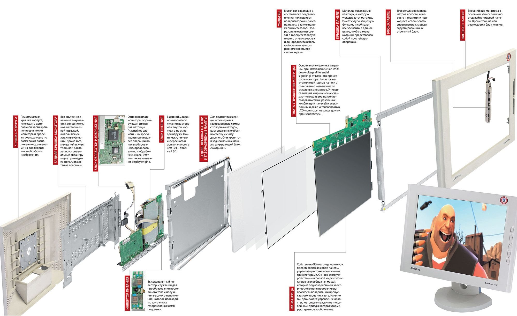 2. Разборка, сборка монитора Замена LCD-экрана, платы, блока питания. Возможна замена корпусных частей. | 1500 руб |