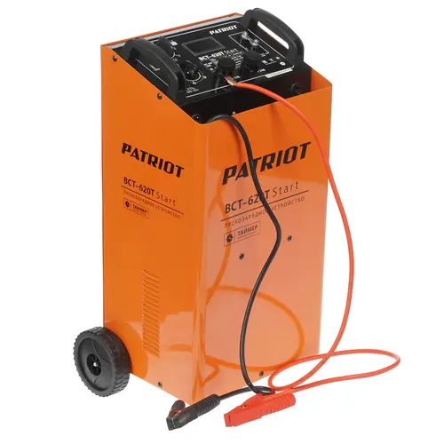 Пуско-зарядное устройство Patriot BCT-620T Start – техника, обладающая прекрасными характеристиками. Оно подойдет как для бытового, так и для профессионального применения. Оборудование предоставляет широкие возможности владельцам, полный перечень необходимых настроек. Пуско-зарядное устройство Patriot BCT-620T Start имеет кабели с клеммами для подключения к батарее. Данное оборудование является универсальным. Оно адаптировано как для зарядки аккумуляторов, так и для запуска двигателей. Для индикации в данной модели применяется дисплей. С его помощью можно определить важные параметры. Присутствуют простые средства для управления оборудованием, настройка показателей не вызывает затруднений. Питание устройство получает от сети. Оно совместимо со множеством аккумуляторов, а напряжение батарей должно составлять 12 и 24 В. Дополнительно реализована защита оборудования от неправильной полярности, короткого замыкания, перегрузки. В набор поставки включается комплект предохранителей для применения с этим устройством. Для перемещения техники производитель предусмотрел колесики и ручку.