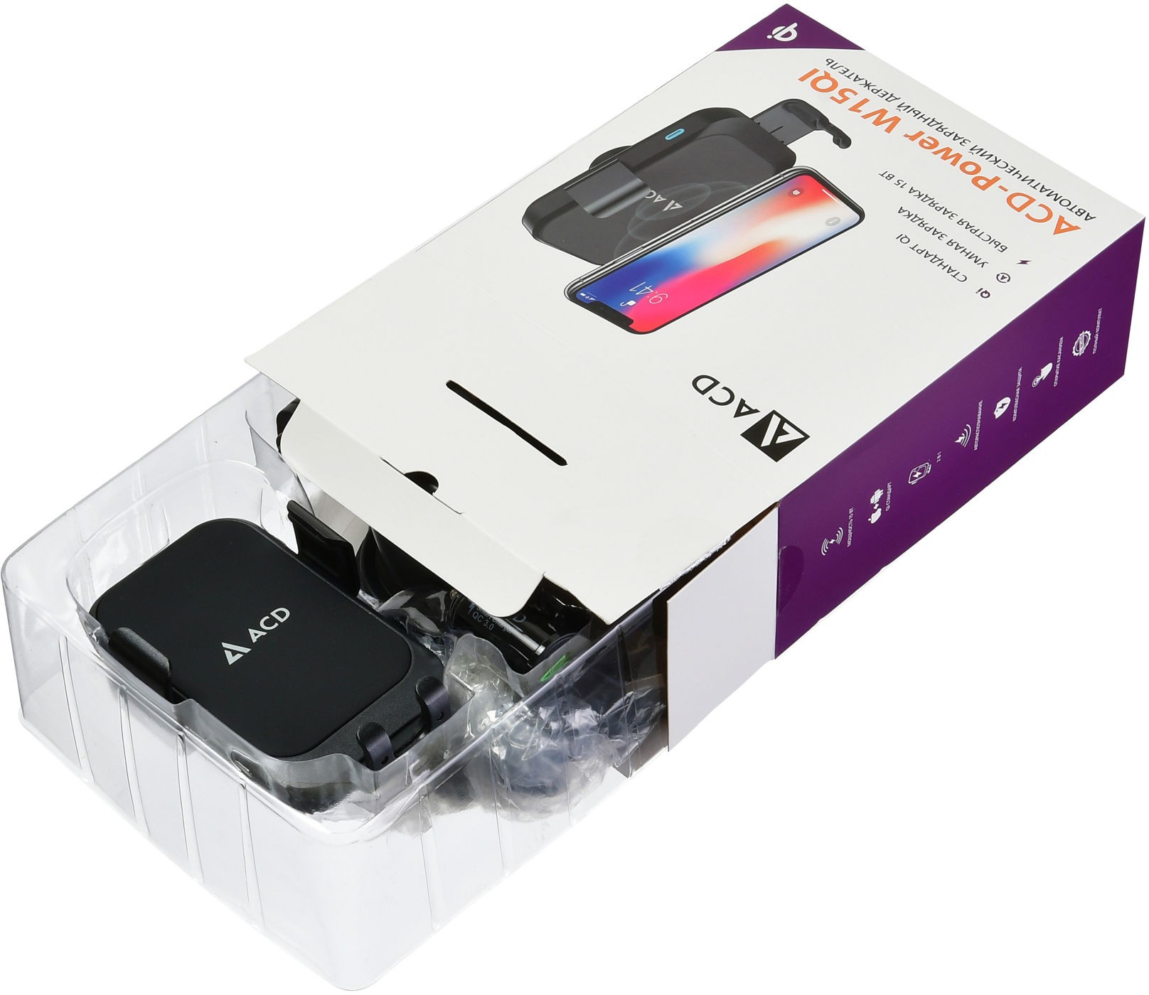 Тип зарядного устройства: Автомобильный Тип подключения: Беспроводной Максимальная мощность, Вт: 18 Входной разъём: USB Защита: От короткого замыкания, от перегрузки Материал корпуса: Пластик Цвет: Черный Габариты: Длина, мм: 73.5 Высота: 121 Глубина, мм: 51 Вид поставки: RTL