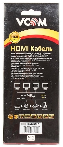 Кабель для подключения HDMI монитора к разъему HDMI видеокарты или для подключения плеера с выходом HDMI ко входу HDMI телевизора