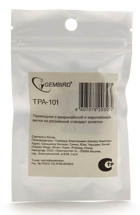 Переходник Gembird TPA-101 пригодится вам в случае, когда необходимо подключить устройство с европейской вилкой в розетку российского стандарта. Данная модель изготовлена из прочных материалов и обеспечивает необходимую безопасность при эксплуатации электроприборов
