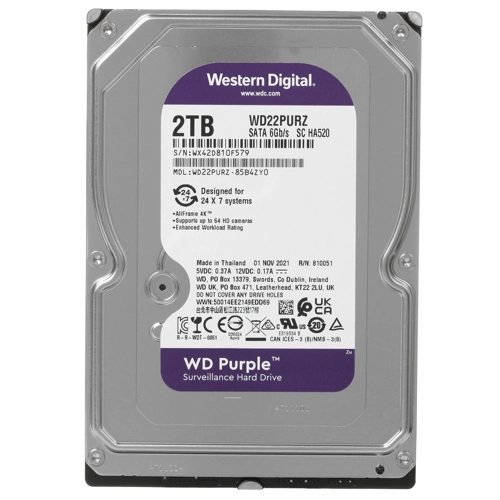 Жесткий диск SATA 2Tb WD Purple 5400rpm 256Mb SATA-3