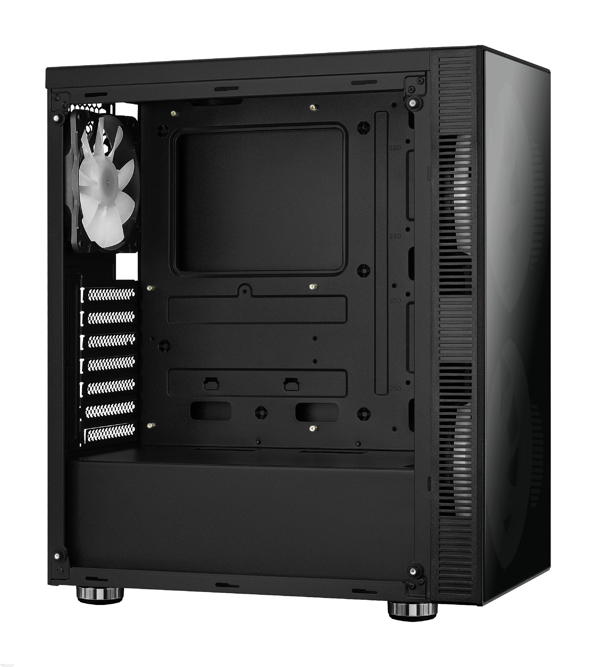 Высокопроизводительный корпус mid tower с передней стенкой и боковыми панелями из закаленного стекла для демонстрации внутренней части вашей системы. Поставляется с двумя 20-сантиметровыми адресуемыми RGB-вентиляторами спереди и одним 12-сантиметровым адресуемым RGB-вентилятором в задней части корпуса.