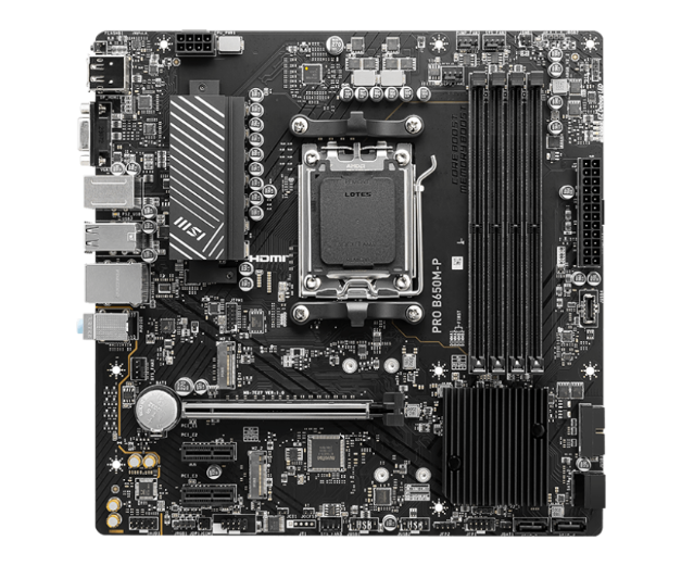 Материнская плата Socket AM5 MSI PRO B650M-P (B650) 4*DDR5 HDMI DP VGA mATX Разъёмы на задней панели: PS/2, 4 x USB 2.0, 2 x USB 3.2 Gen1, 2 x USB 3.2 Gen2, VGA, HDMI, DisplayPort, RJ-45