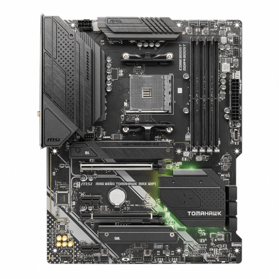 Материнская плата MSI MAG B550 TOMAHAWK MAX WIFI отличается широкими возможностями для создания производительной системы под любые задачи. Платформа соответствует формату Standard-ATX, что открывает широкие возможности для конфигурации компьютера. Благодаря первоклассным компонентам модель отличается высокой надежностью, а стильный дизайн корпуса, сочетающий в себе необычные формы и RGB-подсветку, станет отличным визуальным дополнением вашей сборки.
