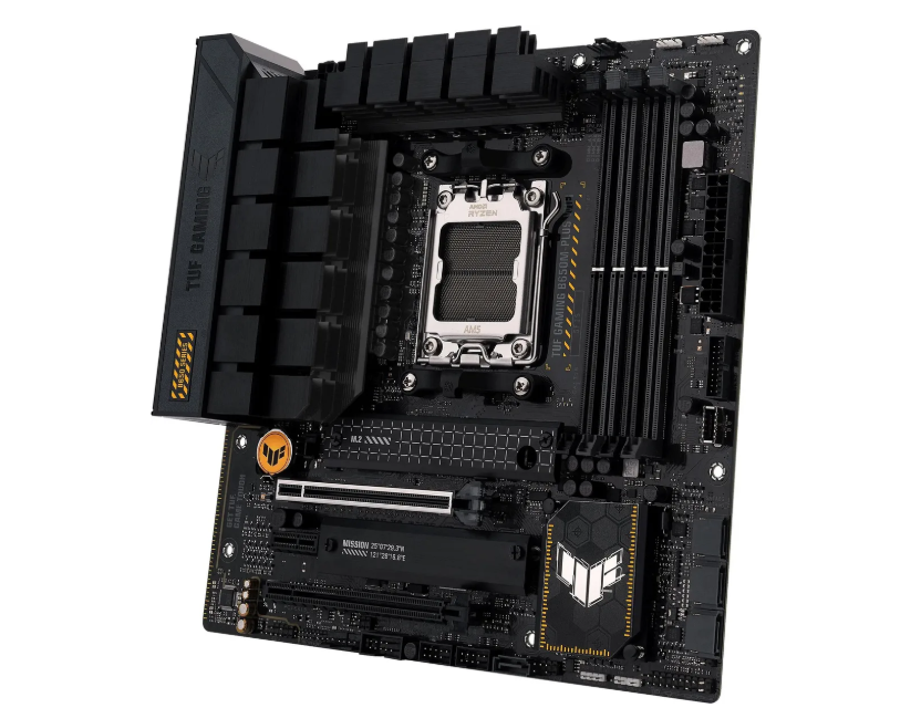 Материнская плата Socket AM5 ASUS TUF GAMING B650M-PLUS WIFI (B650) 4*DDR5 HDMI DP mATX с сокетом AM5, чипсетом B650, 4 слотами DDR5, интерфейсами HDMI и DisplayPort имеет форм-фактор mATX. Назначение: настольный ПК. Питание: 24 и 8+4 пин. Поддержка режима SLI/CrossFire: нет. Тип памяти: DDR5. Слоты расширения: 2x PCI-E x16, 1x PCI-E x1. RAID: 0/1/10. Сетевая карта: 2.5 Гбит/с. Wi-Fi: да. Bluetooth: есть. Аудиосистема: 7.1CH, HDA. USB: 8. Гарантия: 1 год. Некоторые интерфейсы: DisplayPort, HDMI, LAN RJ-45, USB 2.0 Type-A x 4, USB 3.2 Gen1 Type-A, USB 3.2 Gen2 Type-A x 2, USB 3.2 Gen2x2 Type-C. Поддерживаемые процессоры: AMD Ryzen 7000. Максимальный объём оперативной памяти: 128 ГБ.