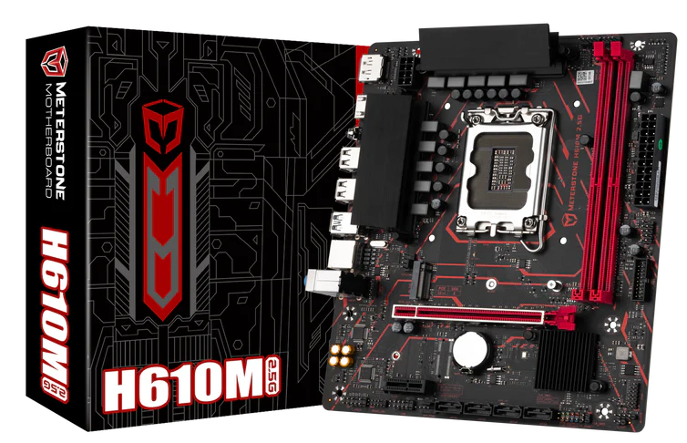 Материнская плата Socket-1700 Maxsun MS-Meterstone H610M 2.5G (H610) 2*DDR4 DP HDMI mATX Сетевой интерфейс 2.5 Gigabit Ethernet (100/1000/2500 Мбит/с) Слоты расширения PCI-E 4.0 x16, PCI-E x1, PCI-E M.2