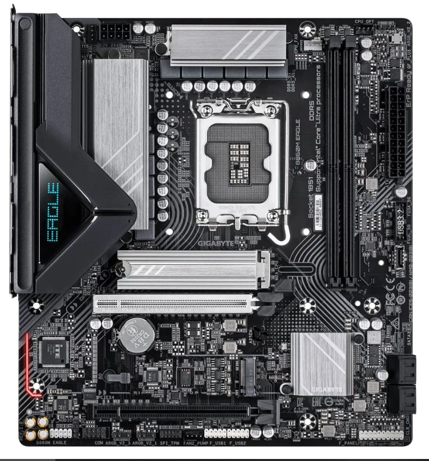 **Основные характеристики:** •Форм-фактор: Micro-ATX; •Чипсет: Intel B860; •Поддержка процессоров: Intel; •Слоты памяти: DDR5; •Разъёмы расширения: PCIe 4.0/3.0 x16, PCIe 3.0/2.0 x1; •Хранилище данных: 1 разъём M.2, 4 разъёма SATA; •Аудиокодек: HD Audio; •Сетевой контроллер: Realtek GbE LAN; •Порты USB: USB 2.0 (4 порта), USB 3.2 (2 порта); •Видеовыходы: HDMI, D-Sub.