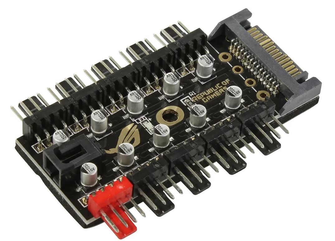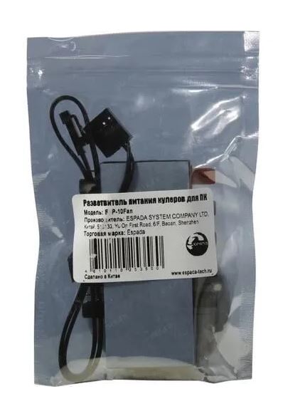 ESP-10Fan — разветвитель питания кулеров для систем, где необходимо отводить большое количество тепла, например в майнинге. Некоторые характеристики устройства: Количество подключаемых кулеров: 10. Напряжение питания: 12 В от PowerSATA. Длина управляющего кабеля: 40 см. Разъёмы: питание — PoewSATA, управляющий кабель — 2pin, подключение кулеров — 4pin. Крепление: внутри корпуса компьютера на двухсторонний скотч. Подключение вентилятора процессора: к красному разъёму хаба, с функцией измерения скорости. Совместимость: подходит для материнских плат с разъёмом 3pin/4pin 12V. Вентиляторы 3pin также можно использовать, но они не имеют PWM (управление скоростью). Управление скоростью: все кулера вращаются со скоростью вращения кулера на CPU, отдельно каждым кулером управлять невозможно. В комплекте: концентратор, 4-контактный PWM-кабель для связи с материнской платой.