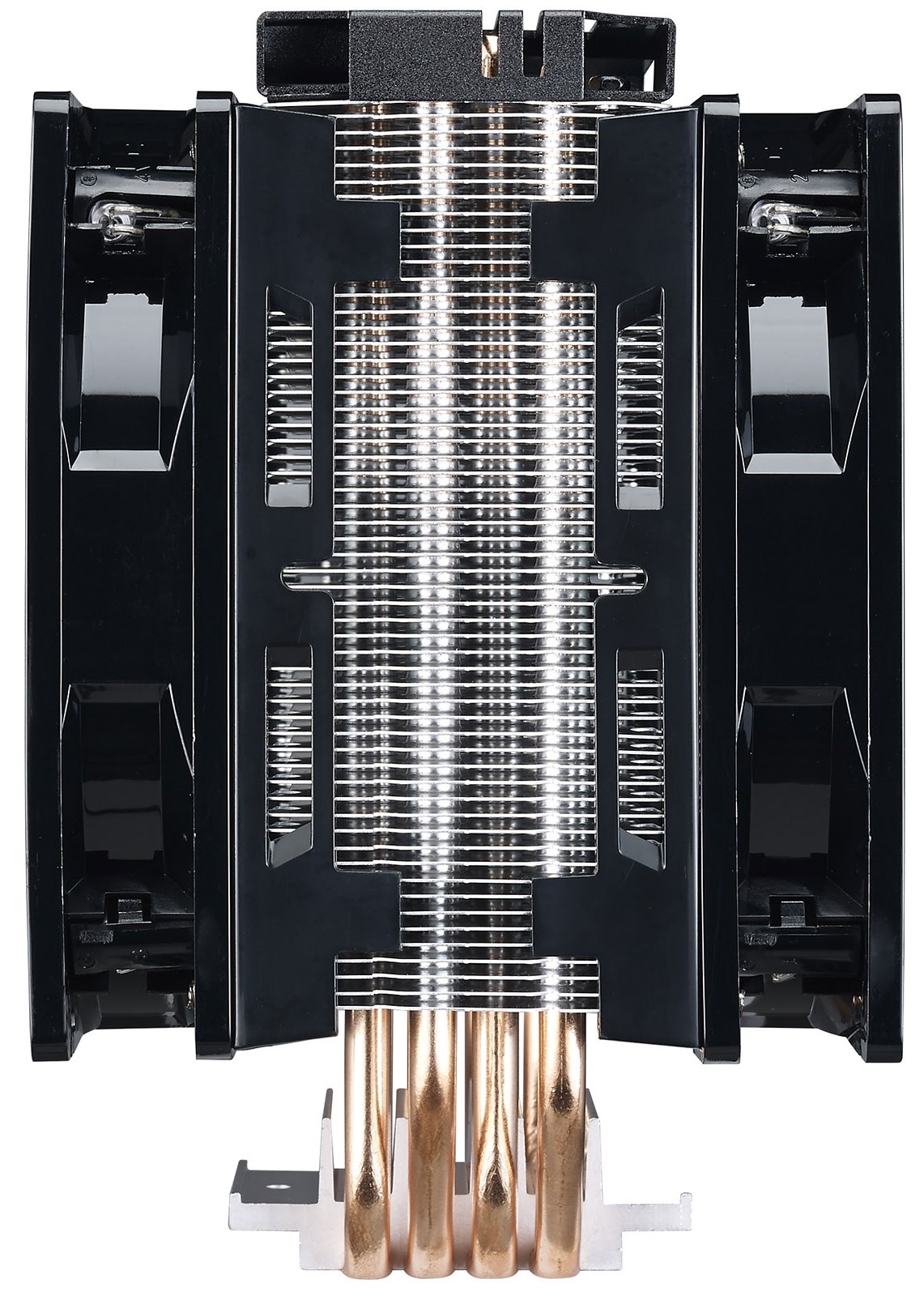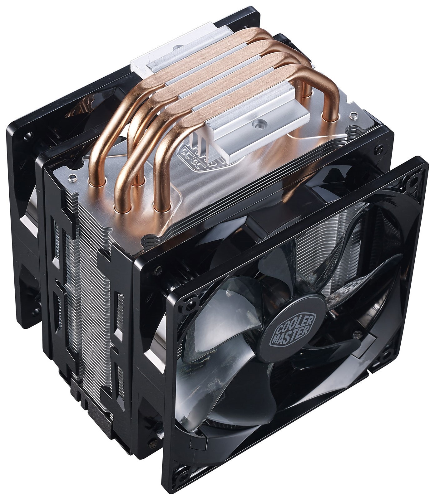 Кулер для процессора CoolerMaster Hyper 212 LED Turbo с медно-алюминиевым основанием призван обеспечить центральному процессору стабильный отвод избыточного тепла при любой нагрузке. Эта система охлаждения относится к числу универсальных и отличается совместимостью с процессорами на сокетах LGA 1156, AM3, LGA 1155, AM3+ (и ряде других). Кулер имеет башенную конструкцию и обладает алюминиевым радиатором, 4 теплотрубками, двумя 120-миллиметровыми вентиляторами. Лопасти вентиляторов имеют продуманную с аэродинамической точки зрения форму, способствующую снижению шума. Кулер для процессора CoolerMaster Hyper 212 LED Turbo с максимальной рассеиваемой тепловой мощностью 150 Вт способен успешно охлаждать даже разогнанный процессор, работающий в условиях значительных тепловых нагрузок. Скорость вращения его вентиляторов находится в диапазоне 600-1600 об/мин и регулируется автоматически. Кулер комплектуется емкостью с термопастой и набором крепежа.