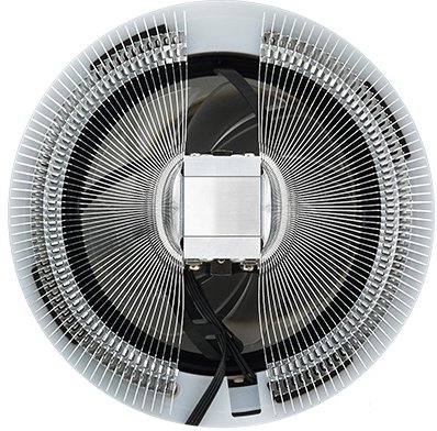 Оснащенный 100-миллиметровым вентилятором кулер для процессора CoolerMaster MasterAir G100L [MAL-G1SN-924PW-R1] – модель от одного из ведущих производителей компьютерных кулеров. Отличительной особенностью устройства является незначительная (лишь 88 мм) высота. Кулер можно использовать в компактном корпусе. Стоит отметить и оригинальное конструктивное исполнение модели. Кулер для процессора CoolerMaster MasterAir G100L [MAL-G1SN-924PW-R1] обладает совместимостью с процессорами Intel и AMD, для установки которых используются более 10 широко распространенных сокетов. Рассеиваемая мощность составляет 65 Вт. Частота вращения вентилятора может меняться в диапазоне от 600 до 2400 оборотов в минуту. Максимальный воздушный поток равен 22.63 CFM. Максимальный уровень шума – 30 дБ. Конструкцией кулера предусмотрена белая подсветка. Для питания кулера используется разъем 4-pin. В комплект поставки входит термопаста в шприце. Масса кулера равна 300 г, а его диаметр составляет 145 мм.