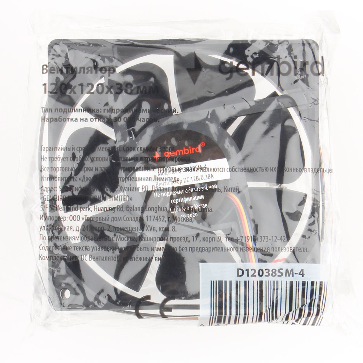 Вентилятор Gembird D12038SM-4 с габаритами 120x120 мм имеет крыльчатку и каркас черного цвета, являясь эффективным компонентом системы охлаждения для собираемого вами системного блока. Питание этот кулер, монтируемый в окно корпуса системного блока, получает от интерфейса 4-pin, подключение к которому осуществляется за счет штатного кабеля питания длиной 400 мм. Скорость вращения вентилятора в процессе работы остается на стабильном уровне и равняется 2500 об/мин. Шумность компонента производитель указывает на уровне 38.65 дБ.