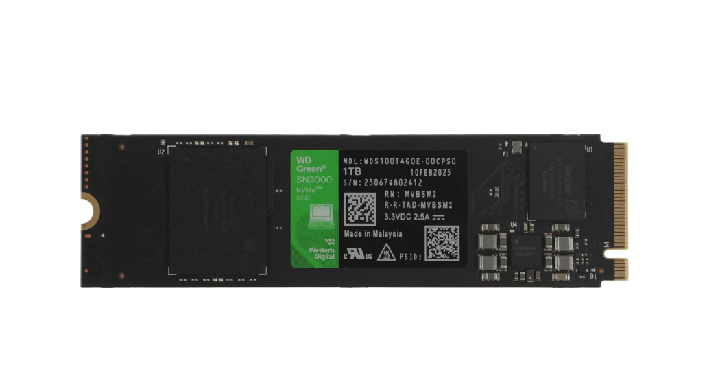 Накопитель SSD M.2 1Tb WD Green WDS100T4G0E (PCI-E 4.0 x4, 5000/4200 Мбайт/сек).