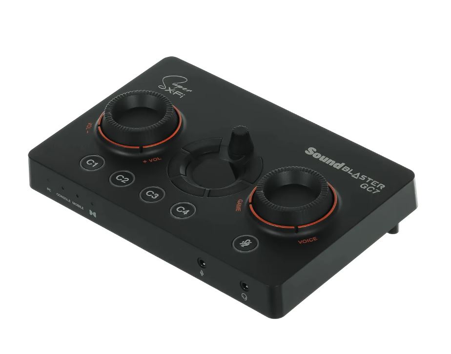 GC7 усовершенствован аудиотехнологиями Super X-Fi и Sound Blaster, поэтому качество аудио превышает любительский уровень. Наслаждайтесь быстрым и полностью настраиваемым управлением программируемыми кнопками. Получите преимущество перед противниками благодаря превосходным инструментам для ведения боя, таким как режимы SXFI BATTLE Mode и Scout Mode. ... Наклон под оптимальным углом для облегчения управления одной рукой. Стильный и утонченный дизайн под цифровой микшер. Sound Blaster GC7 — это первый продукт в серии премиальных игровых аудиорешений для опытных геймеров.