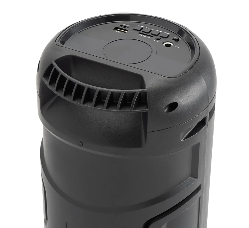 Аудиосистема Hyundai H-MC1221 15W FM USB BT SD/MMC черный. Hyundai H-MC1221 — компактная аудиосистема, которая обеспечит насыщенное звучание для домашних вечеров, дружеских встреч или выездных мероприятий. Эта модель сочетает продуманную конструкцию, современный функционал и удобство управления, создавая комфортную атмосферу для прослушивания музыки. Система оснащена 3 динамиками диаметром 3 дюйма каждый, которые обеспечивают сбалансированное звучание с пиковым уровнем мощности до 30 Вт. Этого достаточно, чтобы наполнить звуком комнату среднего размера или небольшое открытое пространство. Поддержка Bluetooth 5.3 гарантирует стабильное беспроводное подключение к смартфону, планшету или другому устройству без потерь качества и с низким энергопотреблением. Модель предлагает возможность прослушивания FM-радио в диапазоне 87.5–108 МГц, воспроизведения треков с USB-накопителей или карт памяти SD/MMC объемом до 32 ГБ, а также проводного подключения через разъем AUX-IN 3.5 мм. Яркая RGB-подсветка по бокам корпуса подчеркивает ритм музыки, создавая атмосферу вечеринки или домашнего отдыха. Автономная работа до 3 часов от встроенной батареи емкостью 1200 мАч позволяет использовать минисистему вдали от розетки, а зарядка осуществляется через MicroUSB. Удобный разъем для микрофона 6.25 мм превращает устройство в основу для караоке-вечеринок, обеспечивая веселое общение и живое исполнение любимых песен. Hyundai H-MC1221 объединяет портативность, универсальные интерфейсы и выразительное звучание, делая прослушивание музыки удобным.