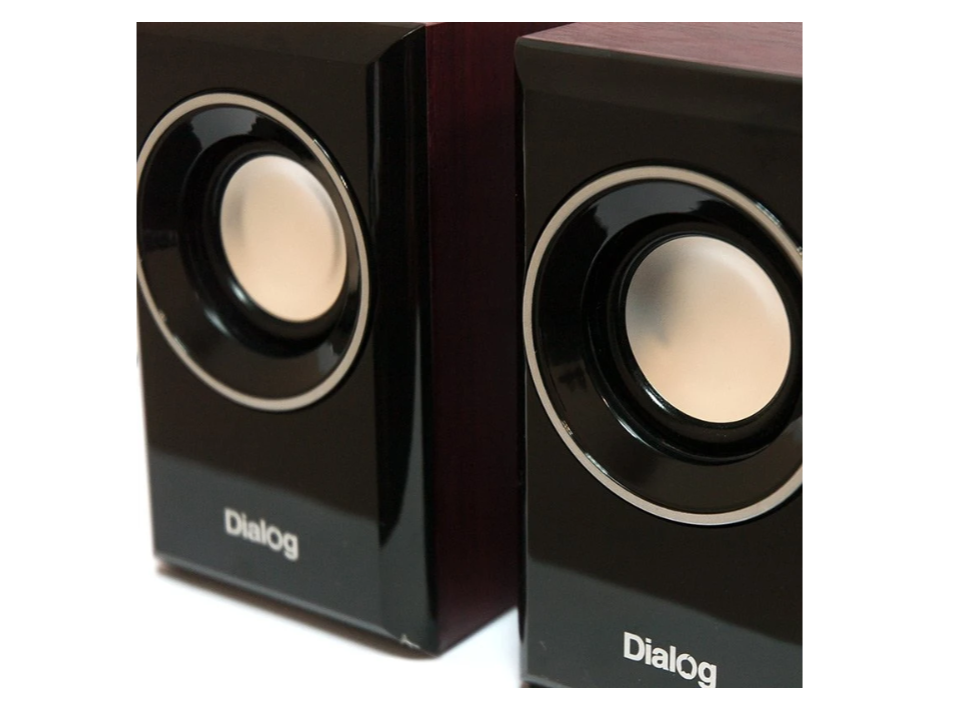 Акустическая система Dialog Stride AST-15UP CHERRY (2х3W, питание от USB) вишня. Особенности: Лицевая панель из глянцевого пластика, немного выше центра расположен 50-мм динамик, нижнюю часть украшает логотип компании Dialog. Боковые и верхняя панели гладкие, без дизайнерских решений или элементов управления. Задняя панель с бортами глубиной 5,5 мм, напротив динамиков расположен фазоинвертор. В нижней части задней панели есть отверстие, куда входит кабель для динамиков. Нижняя панель с 4 маленькими мягкими ножками размером 9×2,2 мм.
