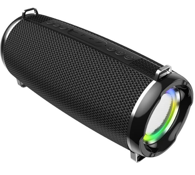 Беспроводная портативная колонка с подсветкой. В комплекте наплечный ремень. ТЕХНИЧЕСКИЕ ХАРАКТЕРИСТИКИ: Мощность: 10 Вт. Динамик: 52 мм (2 шт). Ёмкость батареи: 2400 мАч. Время зарядки: 3 ч. Время воспроизведения: до 6 ч. Версия Bluetooth: 5.0. Поддержка: TWS, TF card, USB, AUX, FM и др. Размер: 142*85*85 мм. Вес: 380 г.