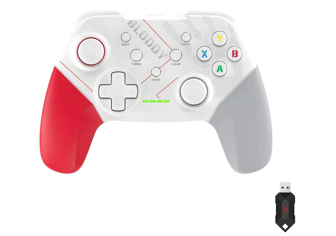 Геймпад A4Tech Bloody GPW50 Sports беспроводной белый.Беспроводное соединение с радиусом действия до 10 м. Для подключения можно использовать беспроводной радиоканал со сверхнизкой задержкой на частоте 2,4 ГГц и кабель длиной 1 м с USB-коннектором.