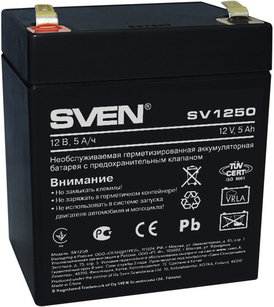 Аккумуляторные батареи SVEN изготовлены по технологии (Gel) с улучшенной конструкцией межэлектродных сепараторов из стекловолокна с применением высокоэффективных свинцово-кальциевых электродных сеток. Свинцово-кислотные необслуживаемые батареи предназначены для работы как в буферном режиме эксплуатации (до 450 циклов) – для источников и систем бесперебойного питания, блоков батарей резервного питания центров хранения баз данных, станций АТС и мобильной связи, сетевых коммутаторов провайдеров Интернета, систем обеспечения безопасности и пожарной сигнализации, так и в циклическом режиме эксплуатации – для аппаратуры автономного питания и систем освещения (до 1200 циклов).