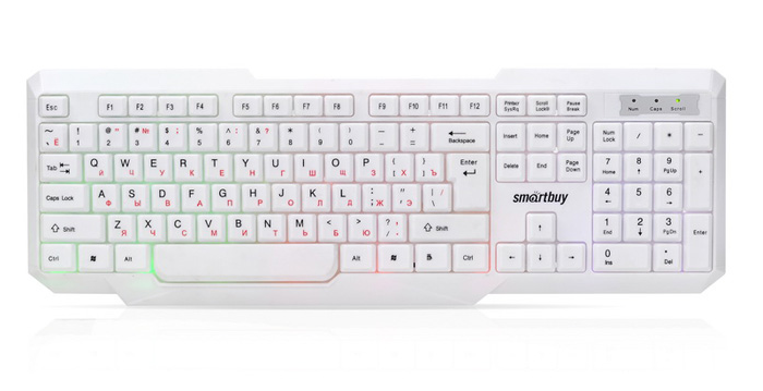 Без клавиатуры SmartBuy SBK-333U-WK эксплуатация стационарного компьютера будет затруднена отсутствием возможности ввода текста. Представленная модель умело сочетает в себе привлекательный черно-белый дизайн и надежность конструкции. Устройство относится к клавиатурам мембранного типа и оборудовано 104 клавишами. Стильный внешний вид этой модели удачно дополняет мягкая подсветка клавиш, представленная зеленым, красным и фиолетовым цветами. Еще одним плюсом в пользу приобретения данной клавиатуры является цифровой блок, с которым удобно работать при обработке больших объемом числовой информации. Клавиатура SmartBuy SBK-333U-WK имеет классическую полноразмерную конструкцию и заключена в пластиковый корпус. Матовое покрытие препятствует образованию на поверхности устройства отпечатков пальцев. Подключение представлено стандартным проводным типом: длинный шнур оборудован USB-разъемом на конце, который подключается в системный блок компьютера. Питание клавиатуры производится по шине через упомянутый кабель.