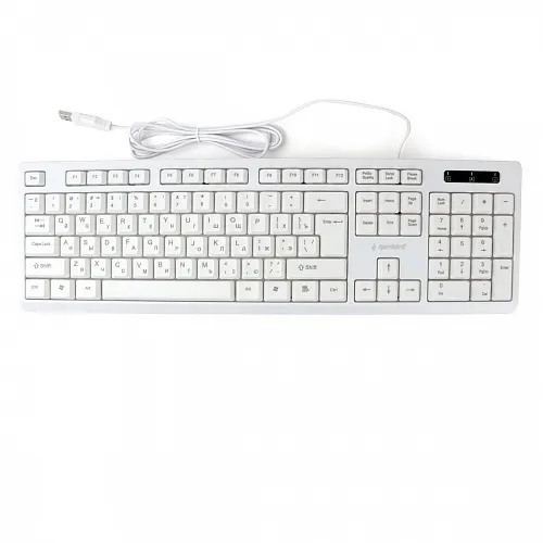 Проводная клавиатура KB-8355U Особенности: 1. Лазерная гравировка символов 2. Классическая раскладка 3. Полноразмерная клавиша “Enter” 4. USB – Интерфейс подключения Технические характеристики: Тип подключения: проводной Количество клавиш: 104 Интерфейс: USB Длина кабеля: 1.5 м Размеры: 445*136*26 мм Вес: 385 г