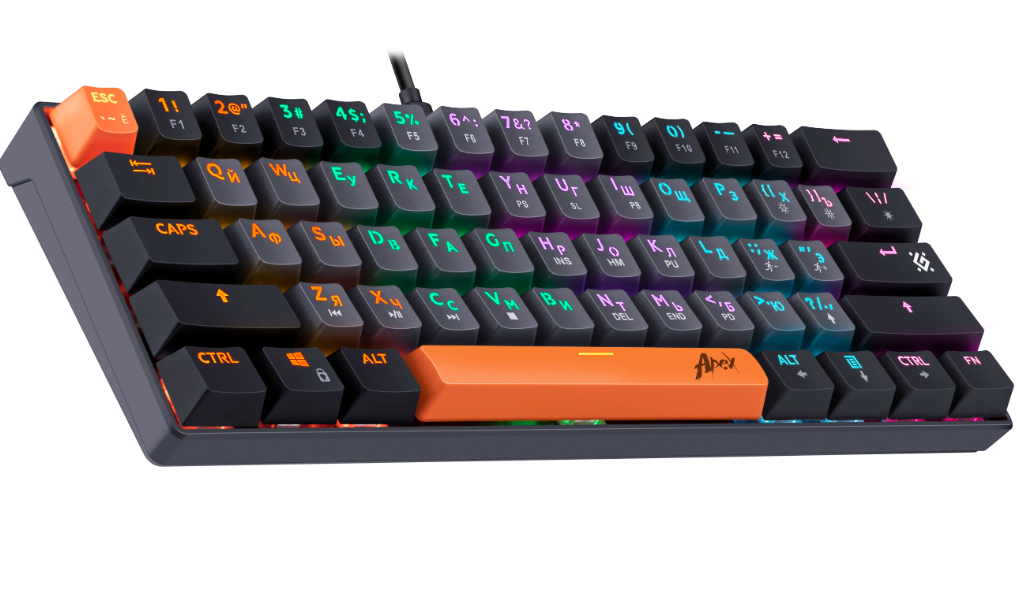 Клавиатура проводная Defender Apex GK-002 выполнена в сером цвете и имеет механические переключатели Outemu Red. Она подключается через USB и предназначена для использования с компьютерами на базе Windows и macOS.