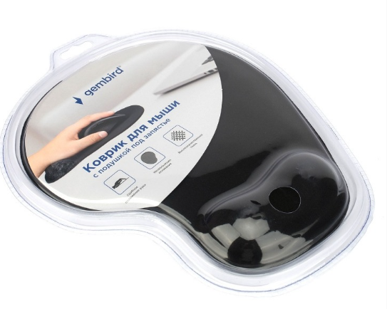Коврик для мыши Gembird MP-WR-BLACK с подушкой под запястье, черный