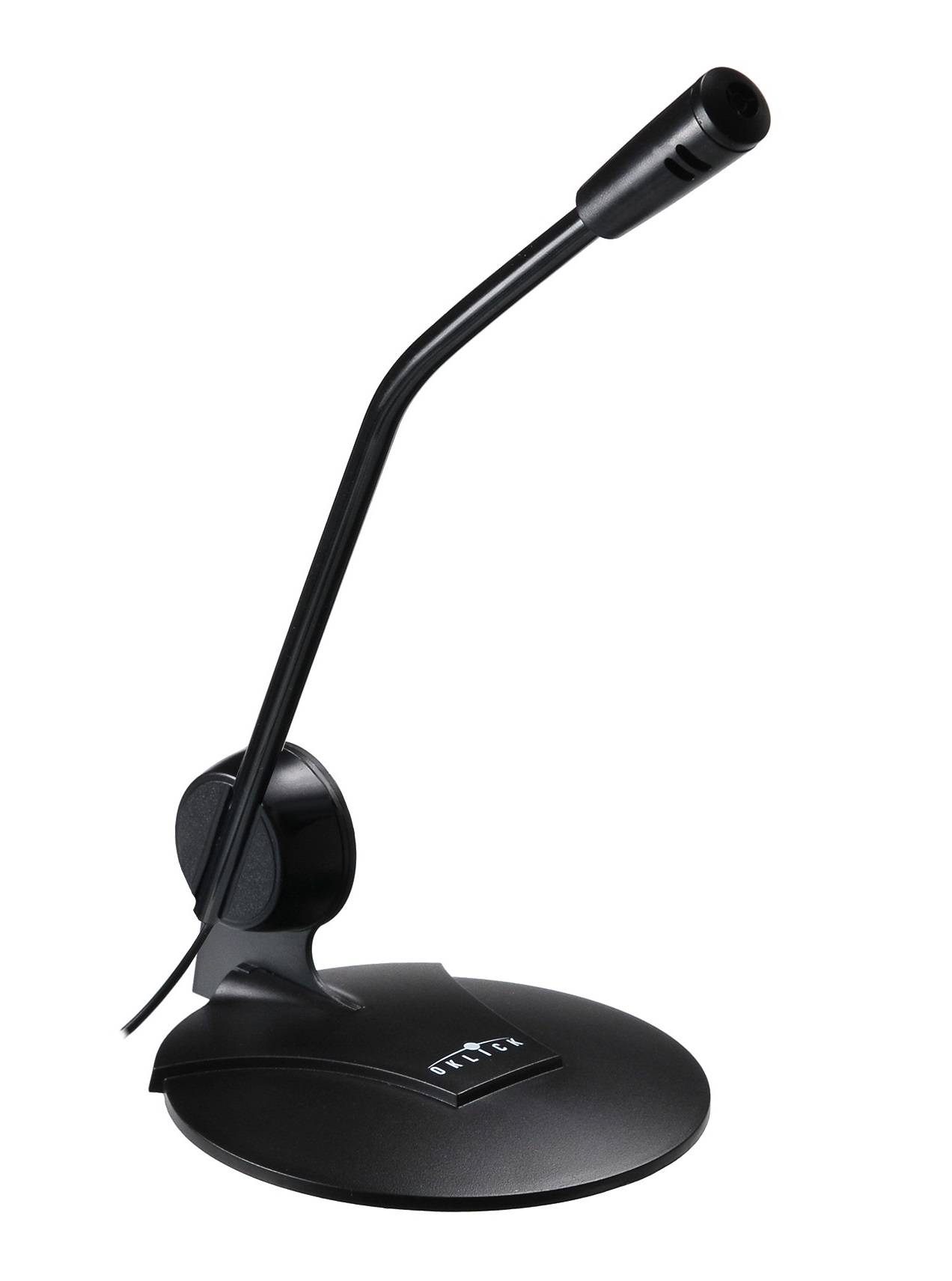 Весьма удобен в обращении и полезен микрофон OKLICK MP-M009. Это устройство использует проводную связь и подключается к системному блоку либо ПК при помощи стандартного 3,5 мм разъема, что обеспечивает микрофону полную совместимость с большинством современных устройств. Длина провода составляет 180 см, что позволяет не беспокоиться о том, где разместить микрофон, чтобы он не мешал работе. Конструктивно данное устройство представляет собой собственно микрофон на тонкой гибкой ножке, которая закрепляется в основании, таким образом, его можно поставить возле клавиатуры на компьютерный стол. Микрофон обеспечивает качественную передачу различных звуков за счет богатого диапазона воспроизводимых частот (50–16 000 Гц), а его чувствительность составляет 58 дБ. Микрофон OKLICK MP-M009 выполнен в эстетичном белом дизайне и будет отлично дополнять интерьер современной комнаты либо офиса.
