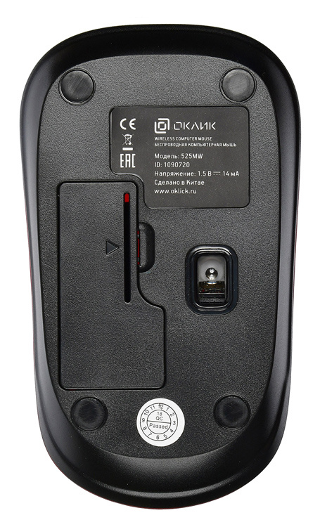Мышь беспроводная Oklick 525MW имеет малогабаритный корпус и наилучшим образом подходит для эксплуатации с ноутбуком, без проблем помещаясь в сумке или рюкзаке для переноски портативного компьютера. Снабженная тремя стандартными клавишами мышь получила оптический светодиоде=ный сенсор, поддерживающий работу в разрешении 1000 dpi. Для питания данной компактной модели используется всего 1 батарейка типа АА. Один такой элемент питания включен в комплект с манипулятором. Беспроводная мышь Oklick 525MW комплектуется миниатюрным USB-ресивером, который подключается к компьютерному порту и обеспечивает мыши взаимодействие с ПК на расстоянии до 10 метров. Корпус манипулятора с покрытием из матового пластика характеризуется симметричностью, поэтому управлять мышью удобно как правой, так и левой рукой.