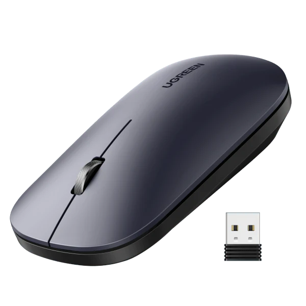 Мышь беспроводная Ugreen MU001 представлена в лаконичном корпусе. Устройство оснащено тремя кнопками управления и отдельной клавишей для включения/отключения. Разрешение датчика составляет до 4000 dpi, что гарантирует быстрый отклик на команды и отсутствие сбоев в работе.