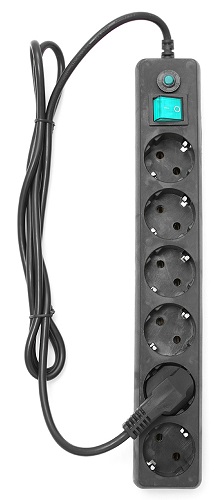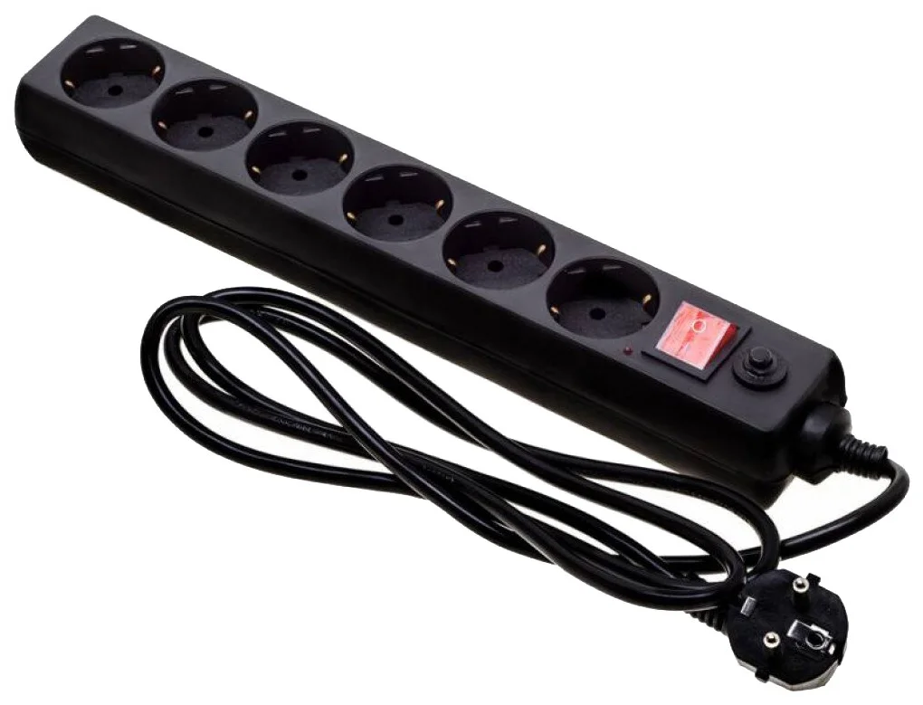 Сетевой фильтр BURO 1.8м (6 розеток, максимальный ток нагрузки 16А) black